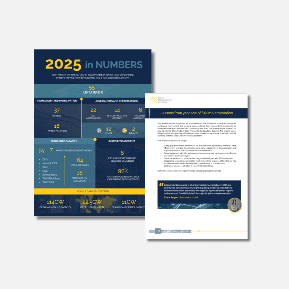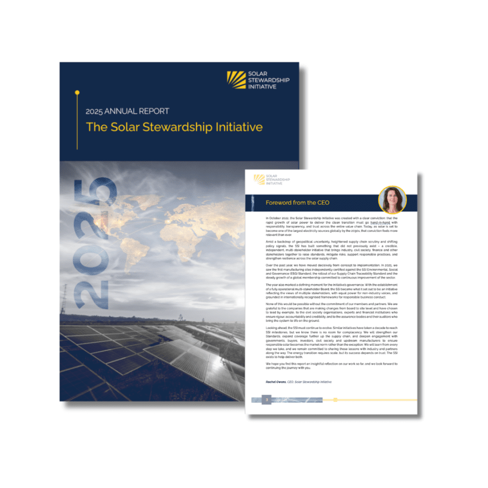 In October 2022, the Solar Stewardship Initiative was created with a clear conviction: that the rapid growth of solar power to deliver the clean transition must go hand-in-hand with responsibility, transparency, and trust across the entire value chain.